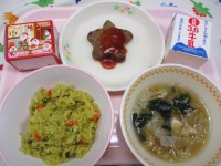 今日のメニューは、・回鍋肉・中華スープ・中華風蒸しパン・ご飯・牛乳です。