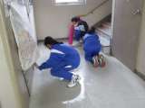1日天気が悪く、校舎内の階段・廊下が結露し滑りやすくなっていたところ、1年生が自発的に校舎中の床を拭いてまわってくれました。気づき、考え、行動できる立派な生徒達です。