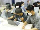 夕食後、各班で、クロームブックを使って、旅の記録をまとめています。