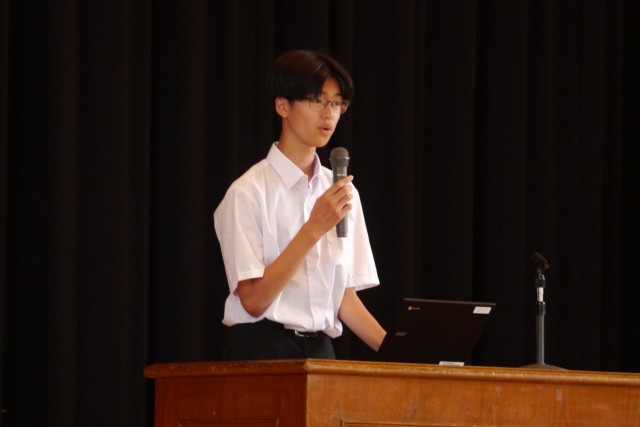 本日、鷲頭祭文化の部が開催されました。各クラスの合唱、私の主張、英語弁論、沼津市科学奨励賞優秀賞受賞の研究発表、ダンス、ピアノ演奏、生徒会によるクイズやスライドショーなど、盛りだくさんのプログラムでした。静かに聴く場面あり、楽しく盛り上がる場面あり、合唱で緊張する場面もあり、充実した、とてもよい時間となりました。ご来校いただいた保護者の皆様、来賓の皆様、お忙しい中ありがとうございました。