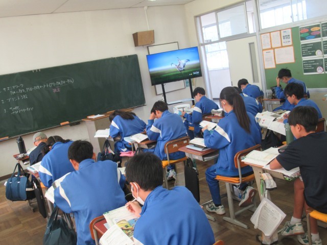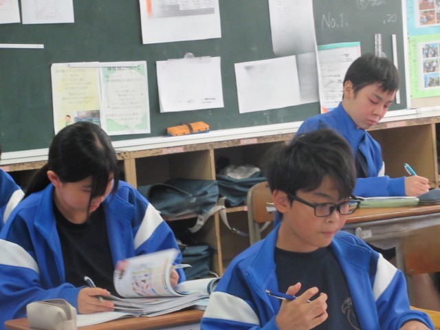 保健体育の授業では、跳び箱やマット運動、平均台などの体操をしていました。生き生きと活動していました。一方、今週は単元テスト週間です。教室では、真剣なまなざしで集中して取り組んでいました。