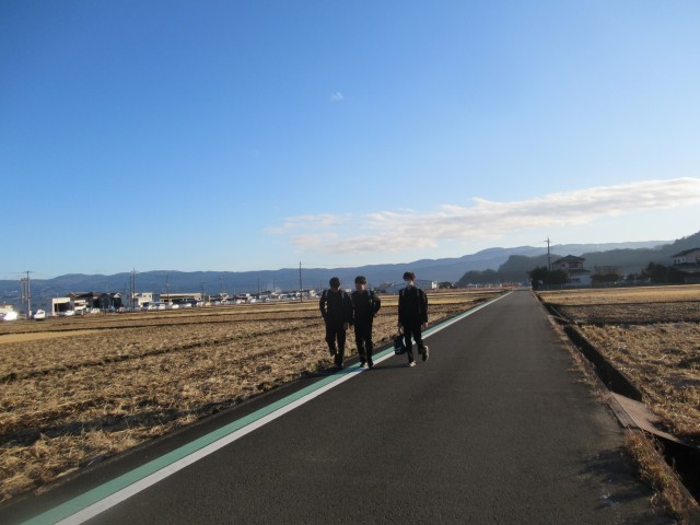 今朝は、霜の降りる寒い朝でした。それでも生徒は元気に登校しました。