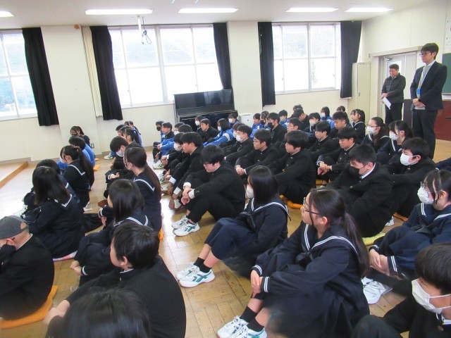 始業式を音楽室で行いました。生徒は真剣に話を聞き、よいスタートができたと思います。