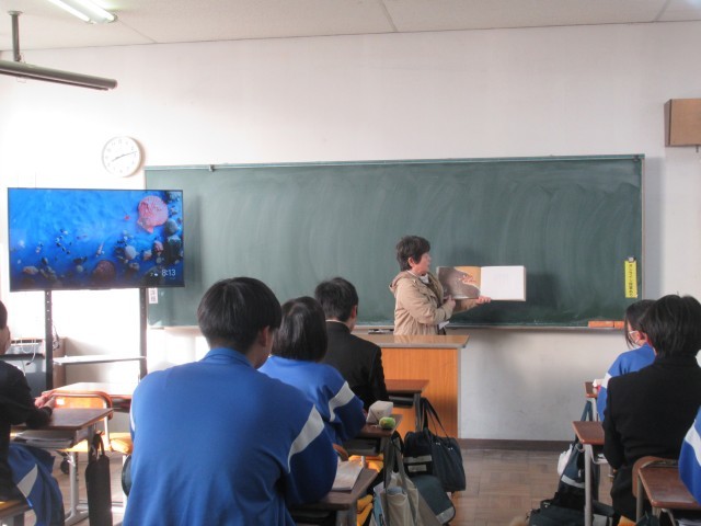 2年生「ヤマタノオロチ」、1年生「かぐや姫」を読んでいただきました。聞いたり読んだりしたことのある内容で、生徒は静かに聴き入っていました。地域のボランティアの皆様、ありがとうございました。