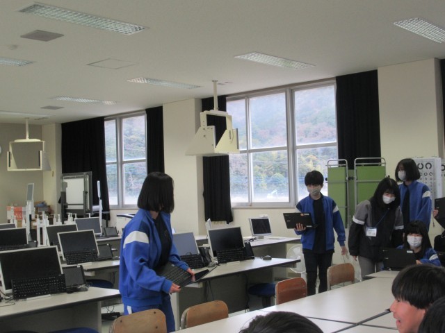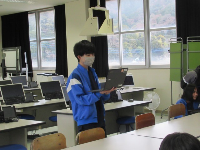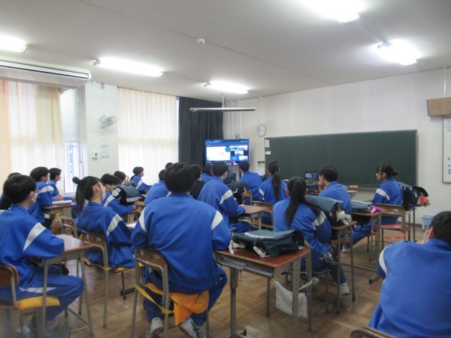 感染症対策で、生徒集会をオンラインで行いました。旧パソコン室から発信しました。今日は、保体委員会の時間で、けがの応急処置などについてクイズ形式で学ぶ時間でした。生徒は各教室で楽しみながら参加しました。