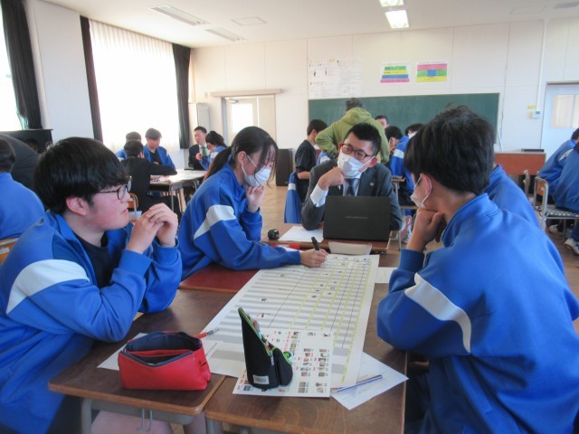 2月10日(火)に、3年生の社会でソニー生命の方々に講師としてご来校いただいて、社会の授業をしました。ソニー生命の方々に、人生設計をたてるうえでの資産運用などについて、丁寧に教えていただきました。生徒は興味をもって2時間取り組みました。ソニー生命の皆様、どうもありがとうございました。