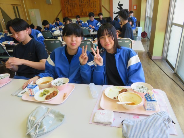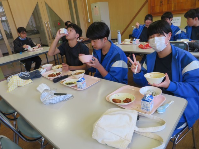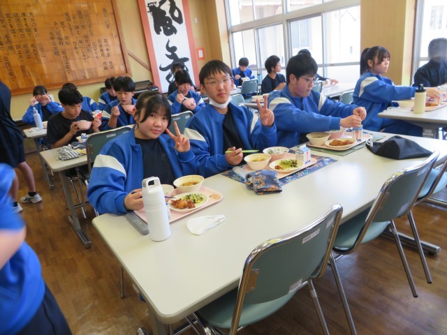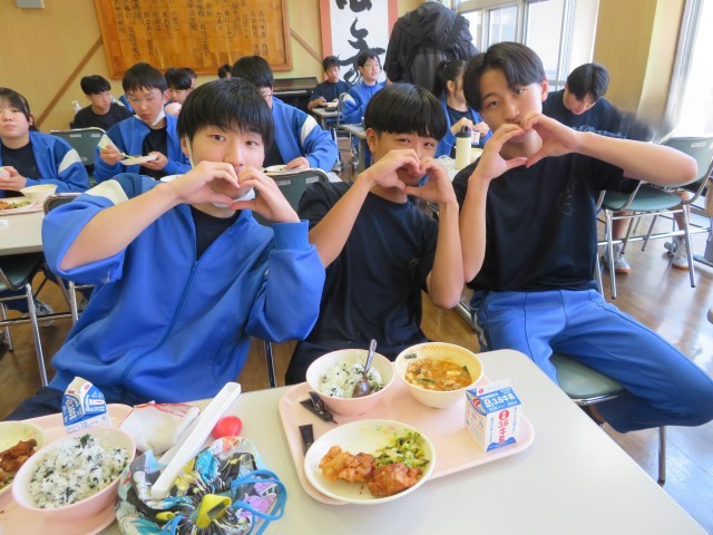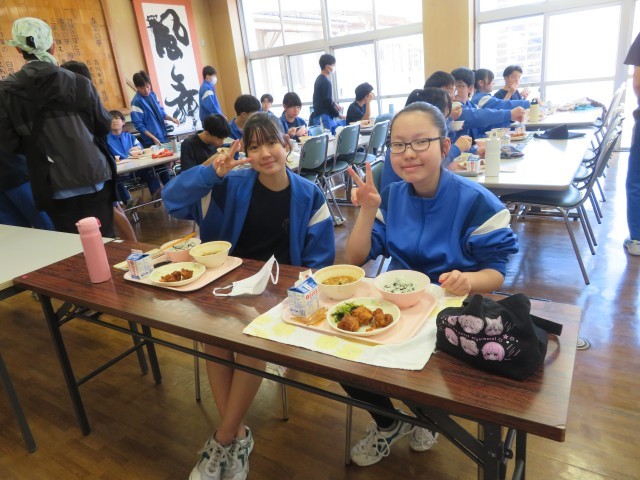 今日は3年生のリクエスト給食でした。唐揚げ、サラダ、キムチスープでした。おいしくて、みんな大満足です!