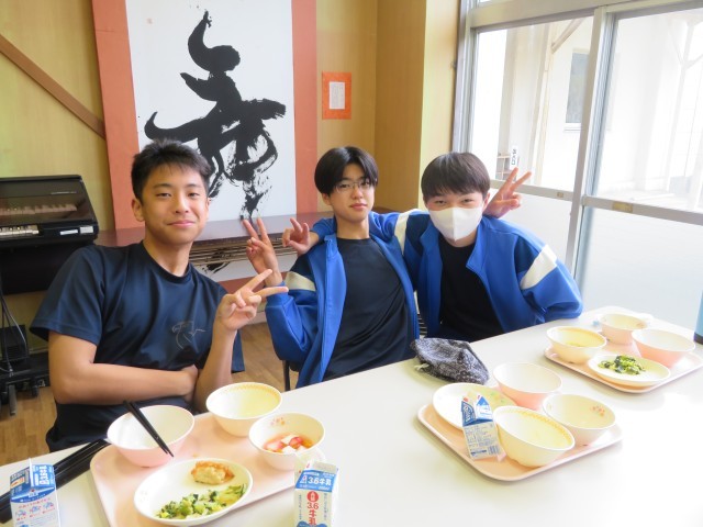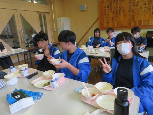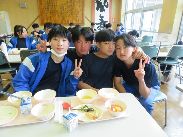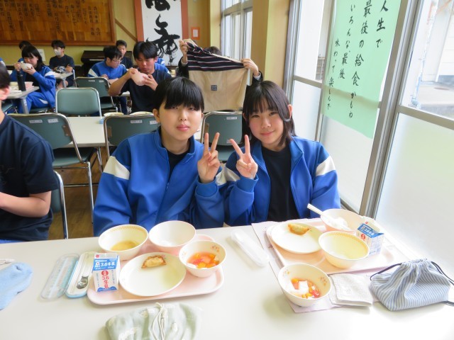 今日は最後の給食でした。杏仁豆腐がデザートで、みんな満足です。もしかしたら、人生最後の給食かもしれません。みんな和やかな雰囲気で食事を楽しんでいました。