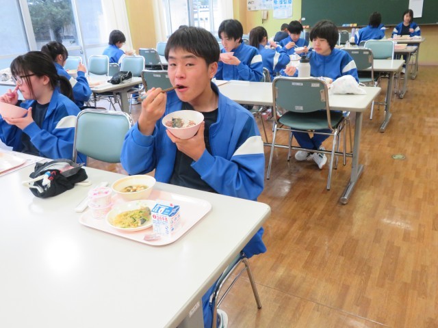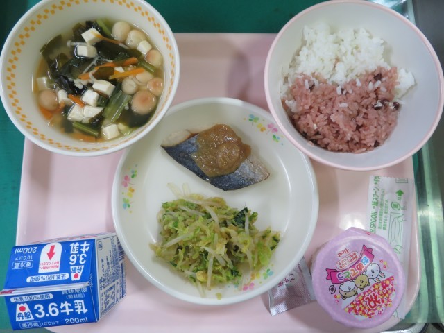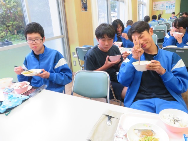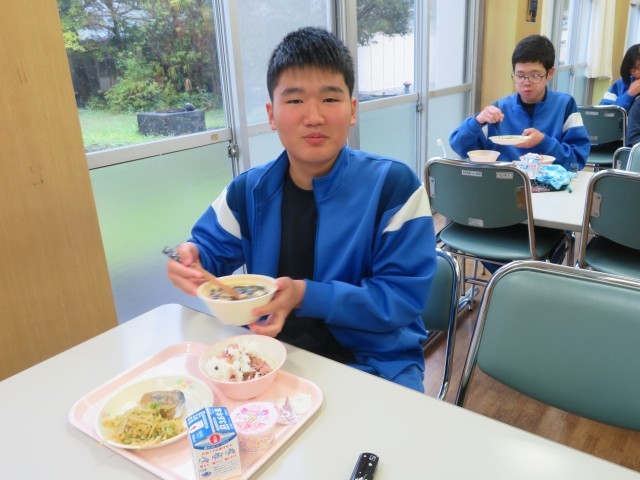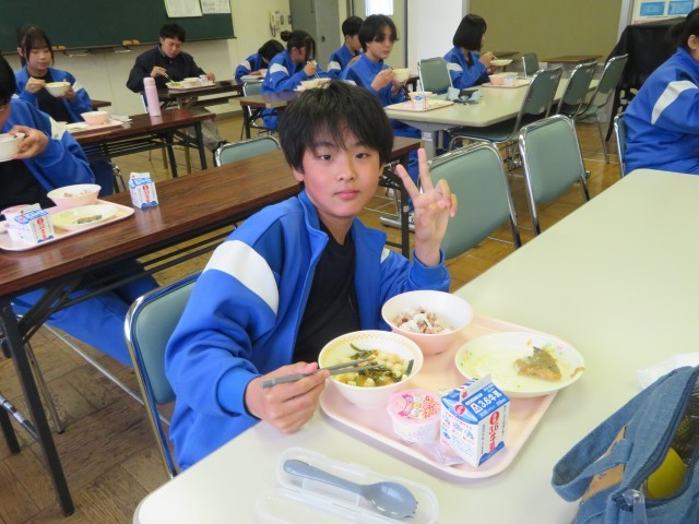 今日から給食がスタートしました。久しぶりの給食に、みんな大満足でした。とてもおいしかったです。