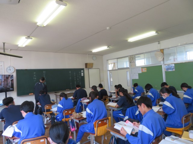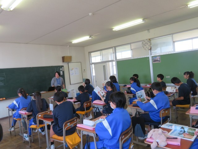 一時間目は道徳の授業でした。担任だけでなく、大平中の先生方が順番に各学年の道徳の授業をします。どの学年の生徒も、穏やかな雰囲気で授業に臨んでいました。