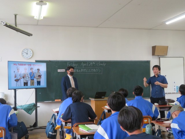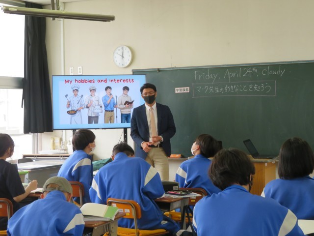 新しいALTの先生と、最初の英語の授業です。自己紹介を聴きながら、先生に質問することを考えていました。新しい先生に興味津々でした。