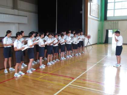 放課後、1年生と2年生は体育館で合唱交換会を企画しました。
