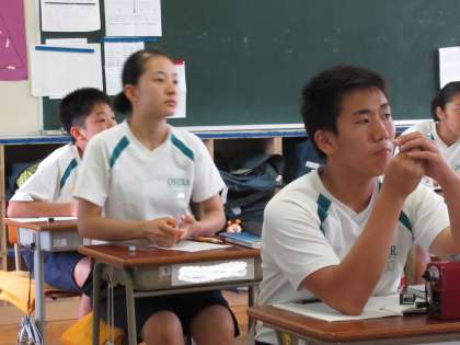 2次関数の式から、グラフを作図する際のポイントを議論しています。