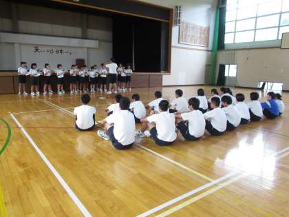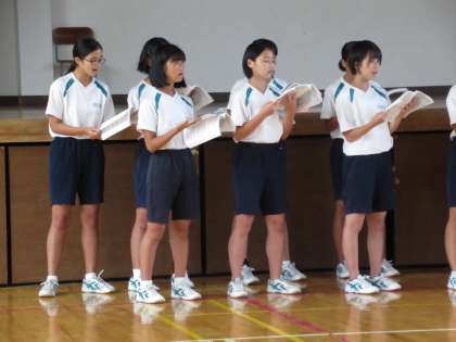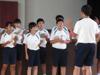 2Aと3Bで合唱の交換会をしています。歌うクラスも、聴くクラスも真剣そのものです。