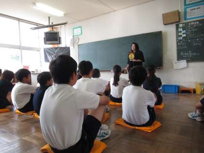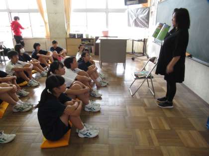 本の世界にいざなわれ、大変集中して聞いています。とてもいい時間が流れています。ボランティアの皆様、毎月、ありがとうございます!!
