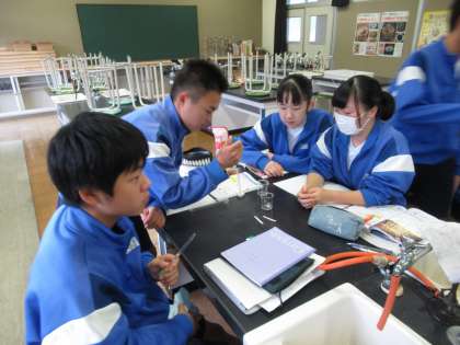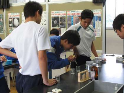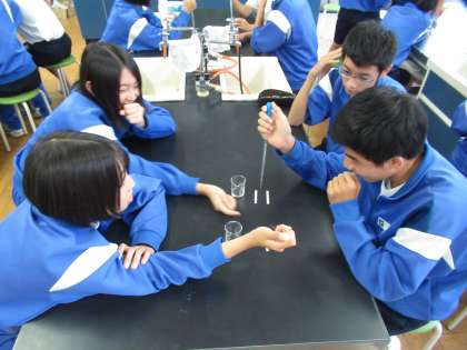 リトマス紙を使って、実験後水溶液が何性になるのかを確認しています。