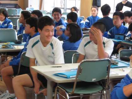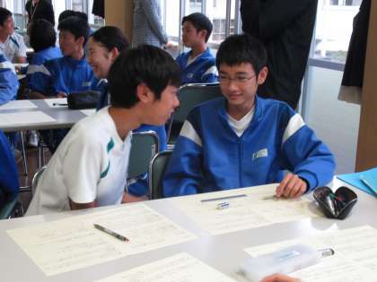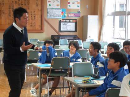 10月31日、11月1日の福祉体験に向けて、知徳高校の先生お迎えし、「福祉」についての考え方や、施設の方々との接し方など、実践を交えて学習しました。