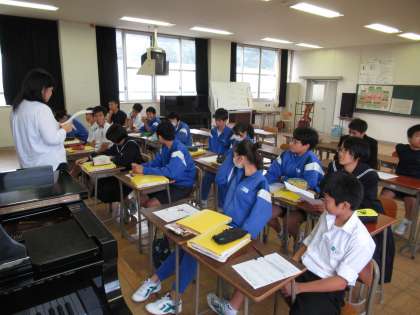 「仲間と協力して弾き語りをしよう」を学習課題に、自分達がチャレンジする楽曲を選んでいます。