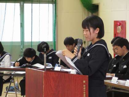 生徒会本部、各専門委員会、各学年委員会から、後期を見通した活動提案が発表されました。