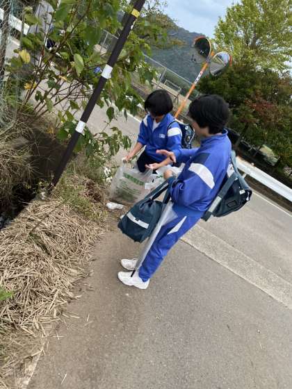 生徒会主催で、24日の下校時と25日の登校時にごみ拾いボランティア活動が行われました。