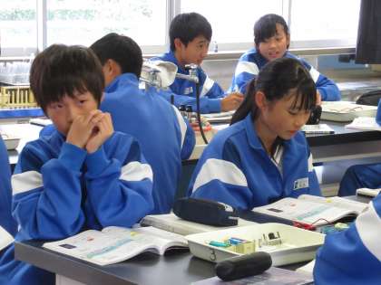 豆電球の中の構造を確認しています。「導線と銅線はどう違うのかな・・・。」