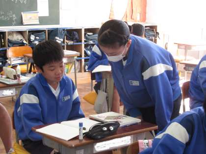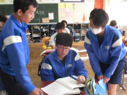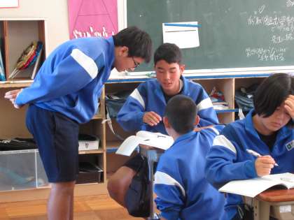 「相似条件を使って、図形の証明をしよう」を学習課題に、二つの三角形が相似であることを意見交換しながら、証明を組み立てています。