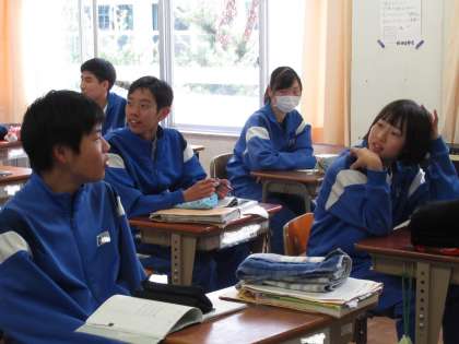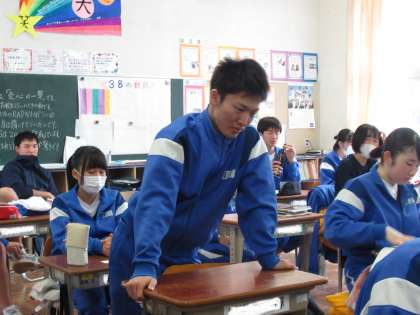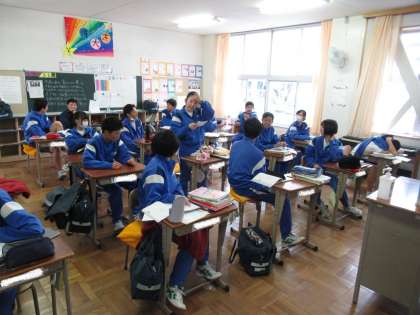 教科係が教科に関する問題を投げかけ、みんなで答えていました。