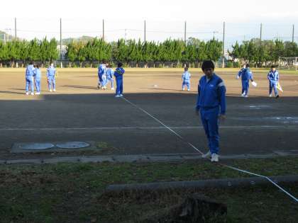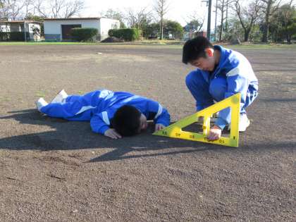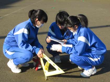 相似な図形を応用し、校舎の高さを数学的に測っています。