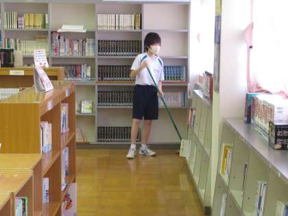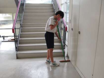 清掃オークションで決まった自分の清掃場所を念入りに清掃しています。