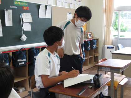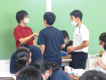 さいころを2つ以上投げる確率について、様々な発想で意見交換しながら追究しています。