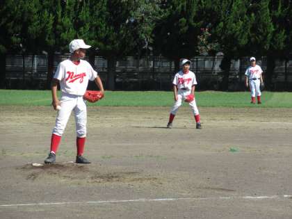 ぬましんカップ予選は、門池中と対戦し、9対6で見事勝利しました。時間制限のため4回で試合終了となりました。相手ピッチャーの球を芯でとらえ、鋭い打球を返し、大量得点につなげていました。試合のなかでベンチから、「すごく楽しい!」と、笑顔で発する声が聞こえました。