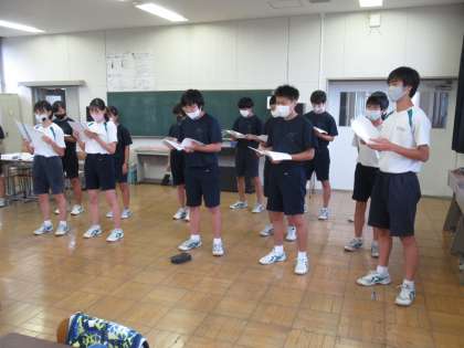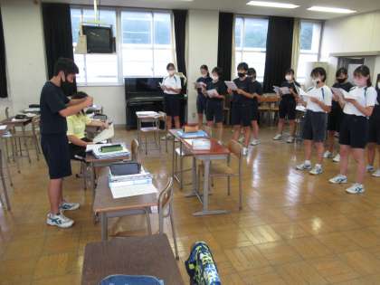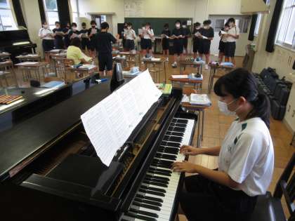 いよいよ合わせての合唱練習を行っています。コロナ対策でマスクを着用しての合唱練習です。