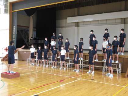 コロナ対策を考慮しながら現段階で可能な範囲で合唱中間発表会を行いました。当日の動きや隊形については今後更に検討していきます。