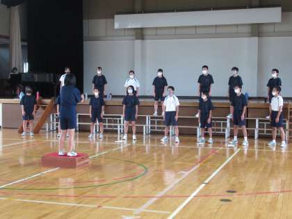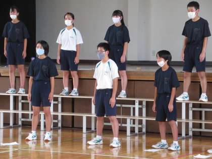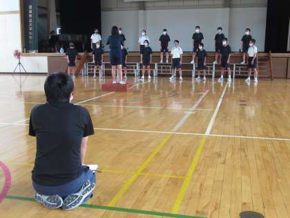 2Aは、ちょうど体育館で合唱練習をしているところでした。広い体育館で丁寧に音の響きを確認しています。
