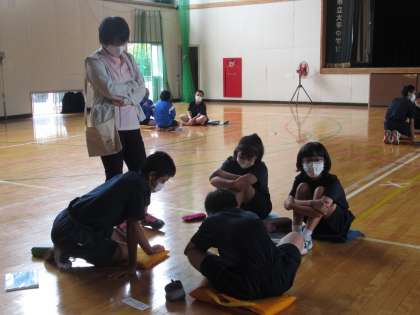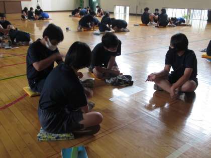 朝の時間に、煌めき集会が行われました。煌めき集会は、ソーシャルスキルを身につけるとともに、仲間同士の絆を深めることを目的に実施しています。今日のテーマは、「給食に係わる方々に感謝の気持ちを伝えるにはどうしたらよいか?」です。班で意見交換した後、発表をしています。
