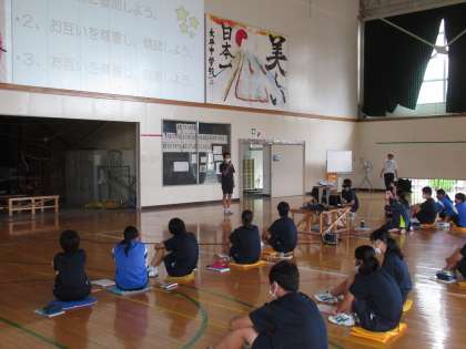 朝の時間に、煌めき集会が行われました。煌めき集会は、ソーシャルスキルを身につけるとともに、仲間同士の絆を深めることを目的に実施しています。今日のテーマは、「給食に係わる方々に感謝の気持ちを伝えるにはどうしたらよいか?」です。班で意見交換した後、発表をしています。