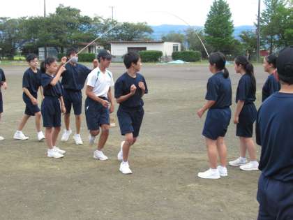26日(土)の鷲頭祭体育の部に向けて、8の字長縄の練習をしています。日に日に上達が見られます!