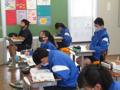 東南アジアについて学習しています。東南アジアのイメージを出し合いながら、産業の特色などを追求しています。