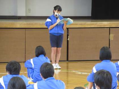新生徒会長から、「人と人とのつながり」を大切にしたいという、新しい生徒会活動のコンセプトが発表されました。