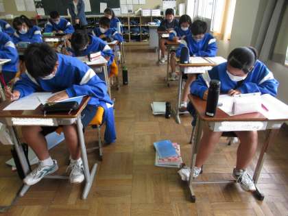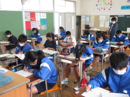 単元テストが返却され、振り返りシートを使って自己が身につけてきた力について分析しています。