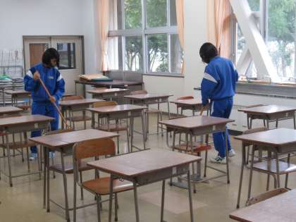 新しい担当場所が決まり、後期最初の朝清掃が行われました。新しい清掃場所に責任を持って取り組んでいます。