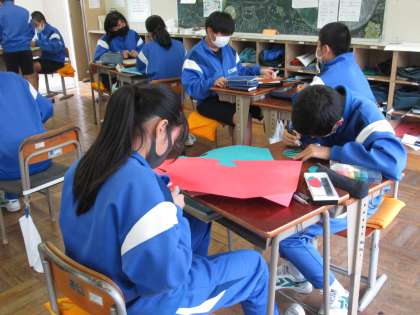 教室に掲示する掲示物を、みんなで分担してつくっています。掲示物一つ一つに創意工夫が見られます。