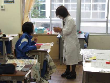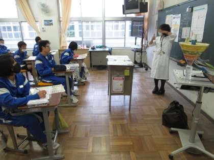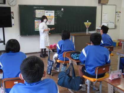 愛鷹小学校より栄養教諭の先生をお招きし、食育の授業をしていただきました。バランスのよい食事やその摂り方などについて、たくさんの教材を使ってわかりやすく教えていただきました。
