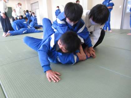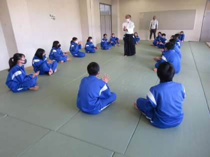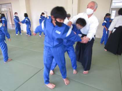 静岡県の体育実技指導協力者派遣事業に協力をいただき、5名の指導協力者をお招きし、合気道を学びました。