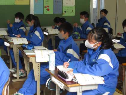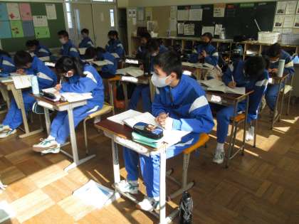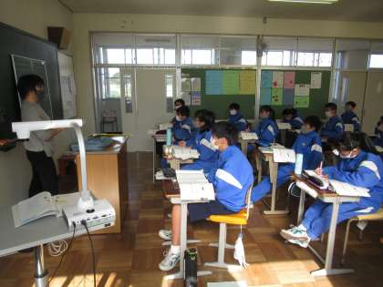 「変域と座標」を学習しています。x軸とy軸のグラフを使い確認しています。