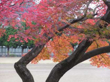 ほとんどの木が葉を落とした中で、一際鮮やかに色づいています。