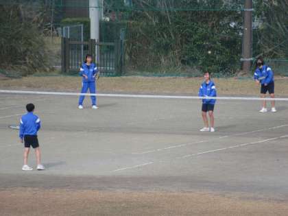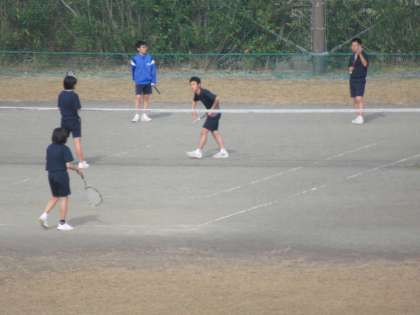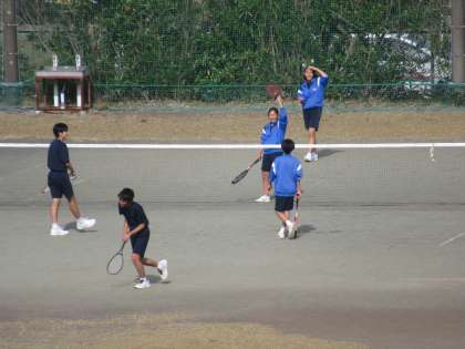 ソフトテニスに取り組んでいます。ソフトテニス部の生徒がよくリードしてくれています。