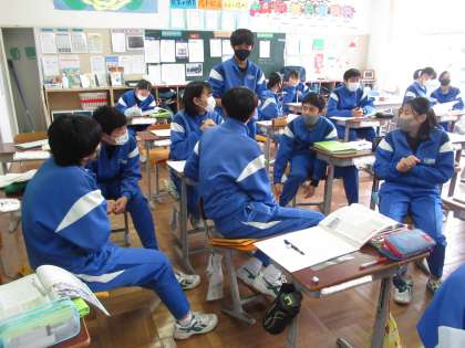 「地方自治と地方公共団体」について学習しています。市長と市議会の権限の違いが話題になり、議論しています。