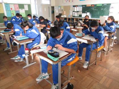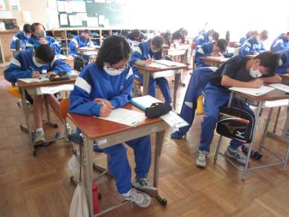 2学期の振り返りを行っています。自分の生活状況をグラフ化して見つめ直しています。