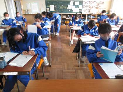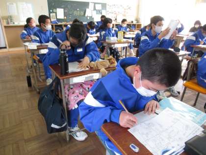 2学期の振り返りを行っています。自分の生活状況をグラフ化して見つめ直しています。